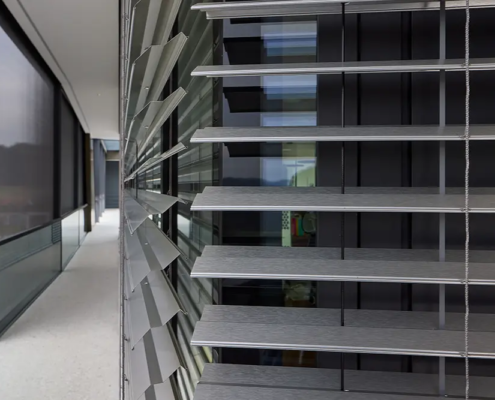 kommt die jeweilige Funktionsbewegung, mit der der Lichteinfall gesteuert wird. Für diese Anforderungen haben wir eigens die ROMA Aluminiumlamellen entwickelt. Beim Basismaterial dieser Profile handelt es sich um hochwertiges Aluminium – von Natur aus korrosionsbeständig und zu 100 % recyclebar. Hohe Farb- und Glanzbeständigkeit sowie große Stabilität garantieren Ihnen Investitionssicherheit.