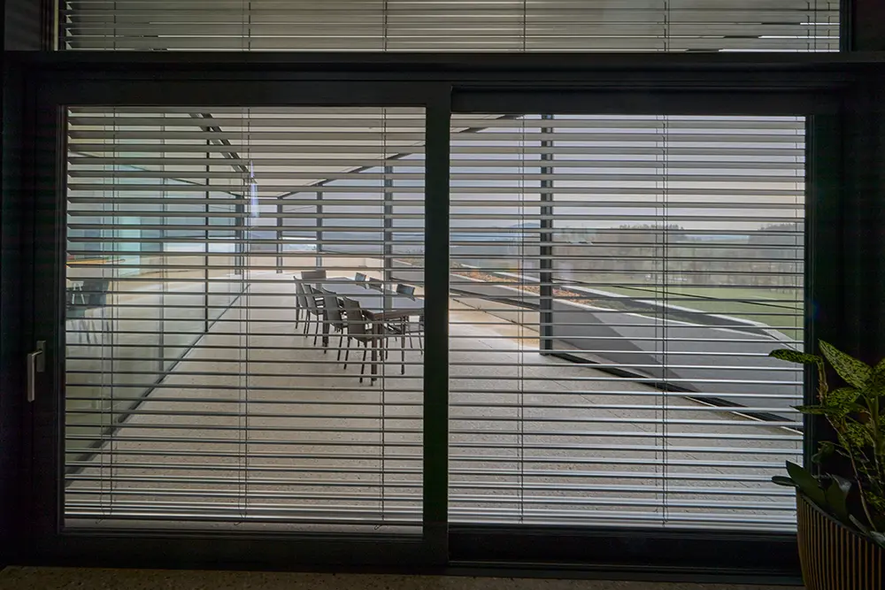 Raffstoren können Licht optimal hereinlenken sowie Einblicke in die eigenen vier Wände verhindern. Aber geht das auch gleichzeitig? Ja, mit der Tageslichttechnik von ROMA: Dabei bleibt bei heruntergefahrenen Raffstoren der untere Teil geschlossen, während der obere Teil durch gedrehte Lamellen Licht und Helligkeit hereinlässt. So können Sie entspannt wohnen, während Ihre intelligenten Sonnenschutzlösungen für perfekte Balance zwischen Offenheit und Privatsphäre sorgen.